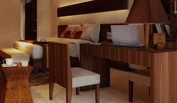 船屋會所位于酒店主體建筑的頂層,一層為酒店大堂,負一層為酒店餐廳。獨特的拱形設計作為酒店的標志性建筑依偎在群山中,與當?shù)芈糜尉包c七仙嶺主峰遙相呼應,與周圍環(huán)境融入得恰到好處,給宛如仙境般的世界增添了幾分姿色。